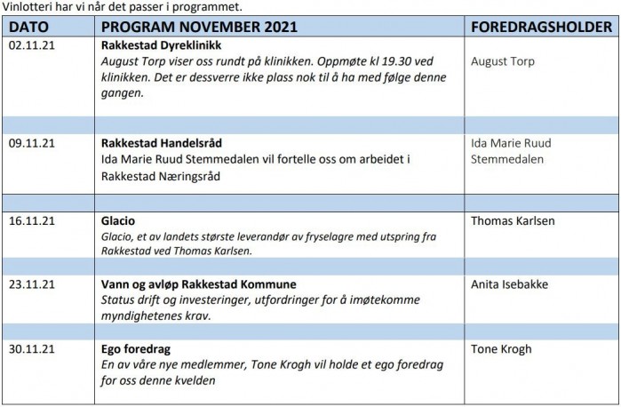 Her vises så komplett program, som jeg har kopier inn for november: